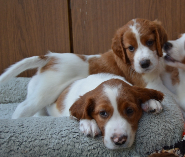 Die Welpen entwickeln sich bestens. Noch ist es recht ruhig in der Wurfkiste, aber …..